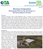 to reduce toxic chemical use from the solvent adhesive lamination process. With the guidance of the Office of Technical Assistance (OTA), Shawmut converted to a hot-melt adhesive process that replaced the use of TCE completely in 2013.